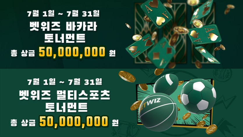 ♠️[벳위즈]총상금 1억원 7월 바카라&멀티스포츠 토너먼트 개최!♠️