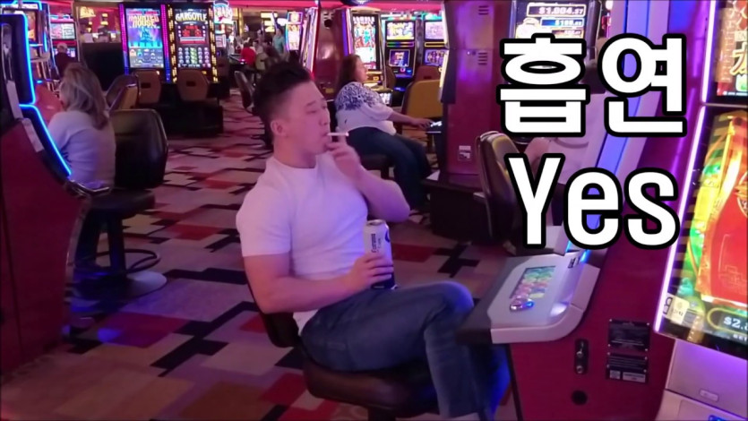 <대부분의 카지노에서는 흡연이 금지되지 않고 있다.>
