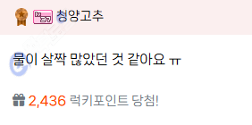 럭포가 떳네요! 작성자 정보 청양고추 작성 작성일 2025.12.08 18:00 컨텐츠 정보 10 조회 3 댓글 목록 본문 럭포감사합니다 !댓글 쓰다보면 기대하지 않은 순간에 터지네요 ㅎㅎ 0 추천 신고 관련자료 댓글 3 쿠쿠케케님의 댓글 쿠쿠케케 작성일 18:09 축하드립니당 신고 축하드립니당 요미치님의 댓글 요미치 작성일 18:09 축하드려요 신고 축하드려요 하하후후님의 댓글 하하후후 작성일 19:26 럭포 축하드려요 신고 럭포 축하드려요 로그인한 회원만 댓글 등록이 가능합니다. 목록