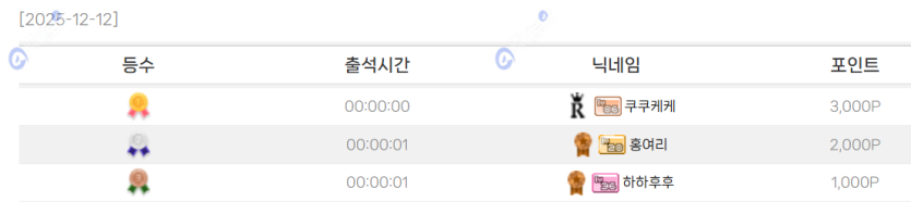 오! 얼마만에 1등인가ㅎㅎ 작성자 정보 쿠쿠케케 작성 작성일 2025.12.12 00:01 컨텐츠 정보 40 조회 4 댓글 목록 본문 2,3등 축하드려요! 0 추천 신고 관련자료 댓글 4 망고딸기솜이님의 댓글 망고딸기솜이 작성일 02:04 축하드립니다!!! 신고 축하드립니다!!! 망고마미님의 댓글 망고마미 작성일 02:05 축하해요 ㅋㅋ 신고 축하해요 ㅋㅋ 머니환전님의 댓글 머니환전 작성일 04:28 오우 축하드려요 신고 오우 축하드려요 요미치님의 댓글 요미치 작성일 08:22 축하드려요 신고 축하드려요 로그인한 회원만 댓글 등록이 가능합니다. 목록