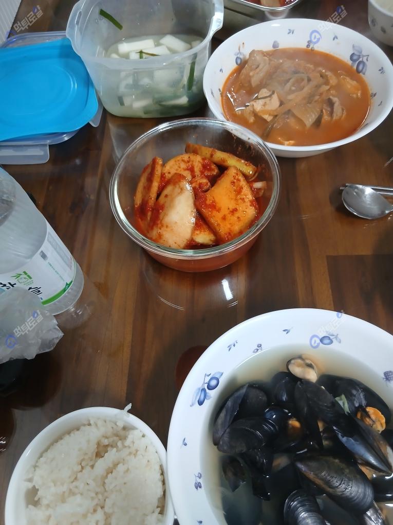 돼지김치찌개 홍합탕 석박지 등등 입니다