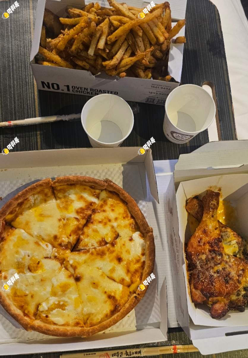 시카고피자와 장각구이 반마리 그리고 감자튀깅을