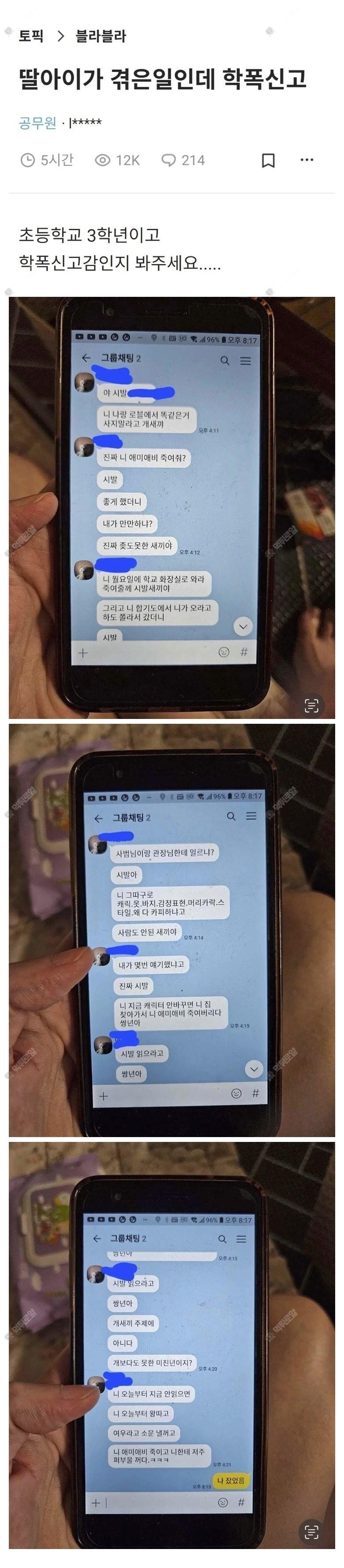 초3 딸이 받았다는 학폭 문자 작성자 정보 청새치 작성 작성일 2024.08.04 20:49 컨텐츠 정보 459 조회 7 댓글 목록 본문 말투가 애 같아서 진짜 기괴 1 추천 신고 관련자료 댓글 7 가드박아님의 댓글 가드박아 작성일 2024.08.04 20:51 진짜 부모가 교육을 어떻게 시켰길래 답도없네여 .. 신고 진짜 부모가 교육을 어떻게 시켰길래 답도없네여 .. 악마님의 댓글 악마 작성일 2024.08.04 20:57 수정됨 딱 하루도아니고 반나절만 가다놓고 비오는날 먼지나듯이 개맞듯이 맞아야할듯.... 진짜 그렇게맞아본적있는데...한번은안되고..... 약발떨어지면 한육개월이나 일년잇다가 한번더 맞아야할듯그렇게..저거 진짜 막나가네...와 저건진짜.....유투브랑방송이 애들 다 베리낫네.......... 신고 딱 하루도아니고 반나절만 가다놓고 비오는날 먼지나듯이 개맞듯이 맞아야할듯.... 진짜 그렇게맞아본적있는데...한번은안되고..... 약발떨어지면 한육개월이나 일년잇다가 한번더 맞아야할듯그렇게..저거 진짜 막나가네...와 저건진짜.....유투브랑방송이 애들 다 베리낫네.......... 꾸까님의 댓글 꾸까 작성일 2024.08.04 21:01 오우 패드립이 장난없네요 ㄷㄷ 요즘 애들 버릇도 너무없고 무섭네요 진짜 신고 오우 패드립이 장난없네요 ㄷㄷ 요즘 애들 버릇도 너무없고 무섭네요 진짜 스님워터밤님의 댓글 스님워터밤 작성일 2024.08.04 21:20 진짜 요즘은 너무 심하네여... 막막한 미래.. 신고 진짜 요즘은 너무 심하네여... 막막한 미래.. 이콩콩님의 댓글 이콩콩 작성일 2024.08.04 22:09 와 초등생 부모지만, 저런거보니, 깝깝하네요. 신고 와 초등생 부모지만, 저런거보니, 깝깝하네요. 아마자자님의 댓글 아마자자 작성일 2024.08.04 22:18 애라서 모른다? 그런거 없습니다. 저런건 확실히 벌받게해야죠 신고 애라서 모른다? 그런거 없습니다. 저런건 확실히 벌받게해야죠 블루님의 댓글 블루 작성일 2024.08.04 22:32 학폭 맞네요,,,, 신고 학폭 맞네요,,,, 로그인한 회원만 댓글 등록이 가능합니다. 목록