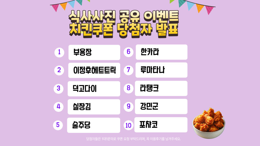 1:1 문의로 치킨쿠폰 요청부탁드립니다.