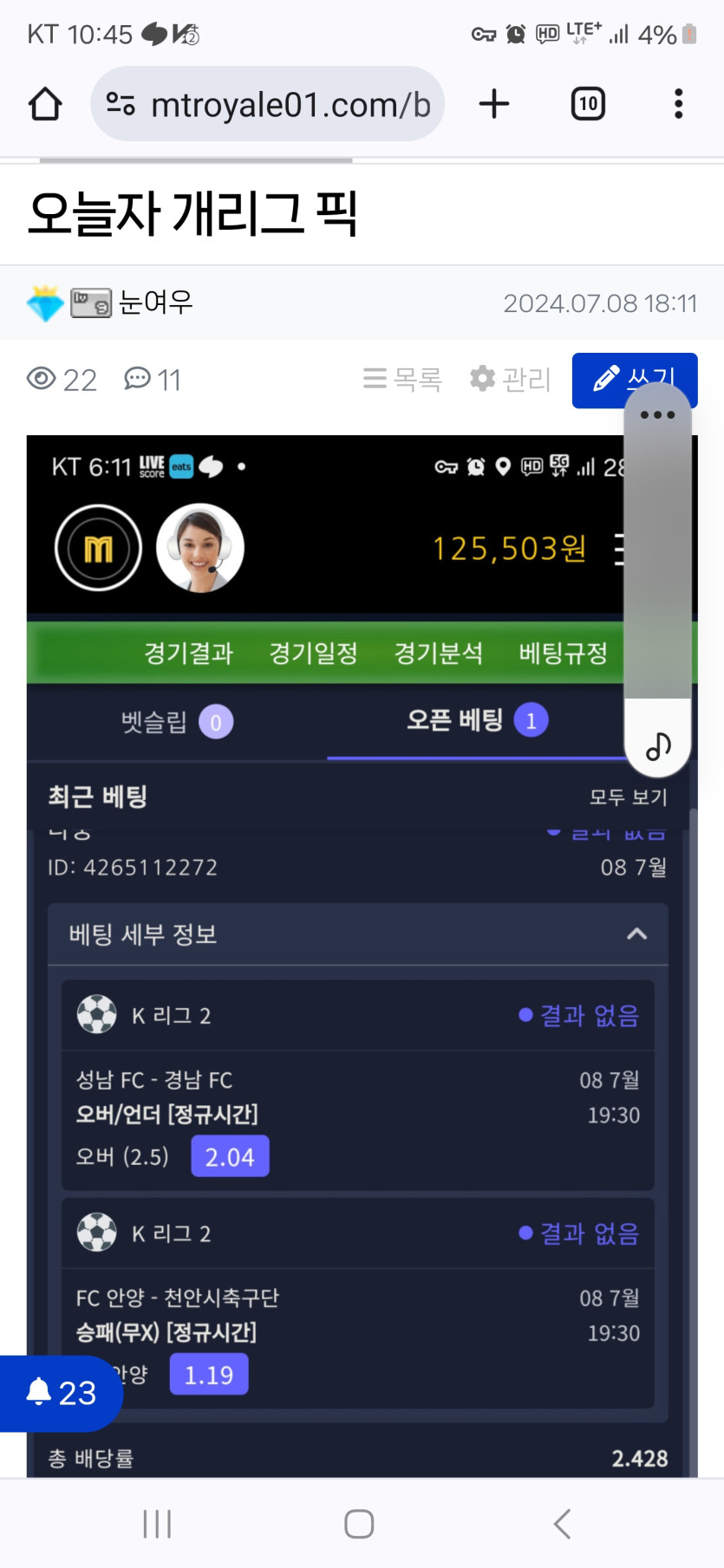 개리그 픽이라 했지만.. 작성자 정보 눈여우 작성 작성일 2024.07.08 22:47 컨텐츠 정보 431 조회 2 댓글 목록 본문 이렇게 푸근할줄이야.. 역시나 개리그는 변수가 많습니다 0 추천 신고 관련자료 댓글 2 아마자자님의 댓글 아마자자 작성일 2024.07.08 23:20 눈여우님 잘맞추시네요 신고 눈여우님 잘맞추시네요 로이열2님의 댓글 로이열2 작성일 2024.07.09 00:29 적중 ㅅㅅㅅㅅ 신고 적중 ㅅㅅㅅㅅ 로그인한 회원만 댓글 등록이 가능합니다. 목록