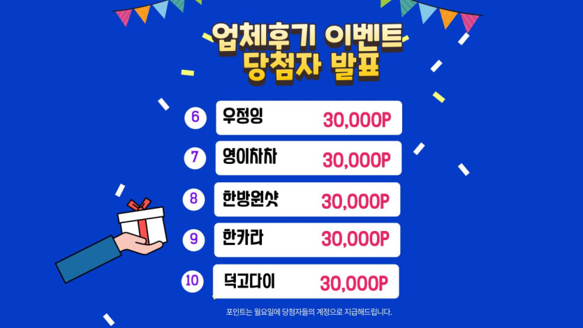 우정잉님의 댓글 우정잉 작성일 2024.07.08 14:55 축하해주신 분들, 모두 고맙습니다. 다음번에는 다 뽑히시길 응원합니다! 신고 축하해주신 분들, 모두 고맙습니다. 다음번에는 다 뽑히시길 응원합니다!
