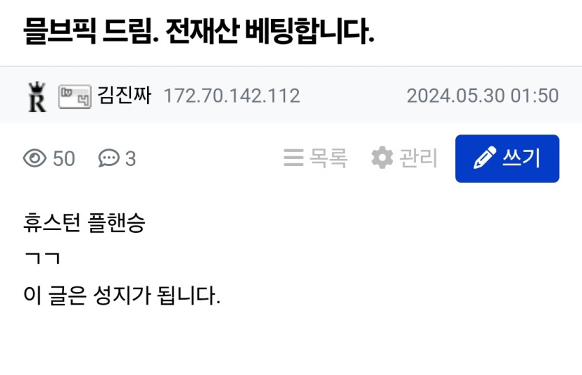 전재산 베팅 성공 작성자 정보 김진짜 작성 작성일 2024.05.30 15:41 컨텐츠 정보 927 조회 8 댓글 목록 본문 6천만원 3개싸이트 써서 단폴 2천씩 휴스턴 플핸때렸는데 역시 먹었쥬? ~~~ 0 추천 신고 관련자료 댓글 8 파뱌시니님의 댓글 파뱌시니 작성일 2024.05.30 15:45 축하드립다~~ 신고 축하드립다~~ 로이열2님의 댓글 로이열2 작성일 2024.05.30 15:58 축하드려요! 신고 축하드려요! 나룻배님의 댓글 나룻배 작성일 2024.05.30 16:12 우와 대단하시다 ㅊㅊㅊ 신고 우와 대단하시다 ㅊㅊㅊ 히든배팅님의 댓글 히든배팅 작성일 2024.05.30 16:43 6천 단폴2천씩요?전사의심장이시네요..굿 신고 6천 단폴2천씩요?전사의심장이시네요..굿 맛스타님의 댓글 맛스타 작성일 2024.05.30 17:45 대박 축하드립니다 ㅎ 신고 대박 축하드립니다 ㅎ 덤프티님의 댓글 덤프티 작성일 2024.05.30 18:44 와. 축하합니다. ㅅㅅㅅ 신고 와. 축하합니다. ㅅㅅㅅ mmj7188님의 댓글 mmj7188 작성일 2024.09.27 16:00 축하해용 신고 축하해용 돈키호테님의 댓글 돈키호테 작성일 2025.09.24 14:34 축하드려요 나이스 신고 축하드려요 나이스 로그인한 회원만 댓글 등록이 가능합니다. 목록