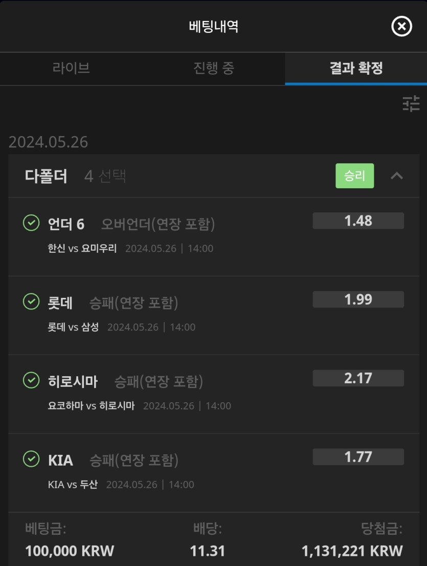 끝내고 오는길인데요. 또 적중ㅋㅋ 작성자 정보 맛스타 작성 작성일 2024.05.26 18:02 컨텐츠 정보 1,568 조회 39 댓글 목록 본문 비오는거 피해서 크보 2개 일야 2개 적중ㅅㅅㅅ 0 추천 신고 관련자료 댓글 39 제이월드님의 댓글 제이월드 작성일 2024.05.26 18:06 축하드립니다. 야구 적중 강의라도 하셔야 되는 거 아니에요? 신고 축하드립니다. 야구 적중 강의라도 하셔야 되는 거 아니에요? 맛스타님의 댓글의 댓글 맛스타 작성일 2024.05.26 20:43 운이죠.... ㅎㅎ 실력으로 착각했다가는 큰코다칩니다ㅋㅋㅋ 자만금지ㅎ 신고 운이죠.... ㅎㅎ 실력으로 착각했다가는 큰코다칩니다ㅋㅋㅋ 자만금지ㅎ 덕고다이님의 댓글 덕고다이 작성일 2024.05.26 18:14 야무지게잘드셧네요 축하드려요~ 신고 야무지게잘드셧네요 축하드려요~ 맛스타님의 댓글의 댓글 맛스타 작성일 2024.05.26 20:43 감사합니다요ㅎ 신고 감사합니다요ㅎ 디그다님의 댓글 디그다 작성일 2024.05.26 18:15 헐..이어려운걸 신고 헐..이어려운걸 맛스타님의 댓글의 댓글 맛스타 작성일 2024.05.26 20:43 이어려운걸 해냅니다 제가ㅎ 신고 이어려운걸 해냅니다 제가ㅎ 히든배팅님의 댓글 히든배팅 작성일 2024.05.26 18:31 아따 성님 배부르것소 굿 신고 아따 성님 배부르것소 굿 맛스타님의 댓글의 댓글 맛스타 작성일 2024.05.26 20:43 굿이요~ 신고 굿이요~ 성남은후님의 댓글 성남은후 작성일 2024.05.26 19:54 추카해용 신고 추카해용 맛스타님의 댓글의 댓글 맛스타 작성일 2024.05.26 20:43 감사해용ㅎ 신고 감사해용ㅎ 카스비아님의 댓글 카스비아 작성일 2024.05.26 23:57 부럽다 잘 골라가셨네 신고 부럽다 잘 골라가셨네 맛스타님의 댓글의 댓글 맛스타 작성일 2024.05.27 01:19 감사합니다.ㅎㅎㅎ 신고 감사합니다.ㅎㅎㅎ 코코그린님의 댓글 코코그린 작성일 2024.05.27 02:19 축하드립니다 신고 축하드립니다 맛스타님의 댓글의 댓글 맛스타 작성일 2024.05.27 02:20 감사합니다 신고 감사합니다 장예나님의 댓글 장예나 작성일 2024.05.27 02:55 부럽다드부러워 퓨 신고 부럽다드부러워 퓨 맛스타님의 댓글의 댓글 맛스타 작성일 2024.05.27 09:39 ㅎㅎㅎㅎㅎ 신고 ㅎㅎㅎㅎㅎ 총알새님의 댓글 총알새 작성일 2024.05.27 07:45 와부럽다진심ㅜㅜ 신고 와부럽다진심ㅜㅜ 맛스타님의 댓글의 댓글 맛스타 작성일 2024.05.27 09:39 힘내세용. 신고 힘내세용. 포챠코님의 댓글 포챠코 작성일 2024.05.27 08:09 축하드립미다 진심으로ㅠㅡㅠ 신고 축하드립미다 진심으로ㅠㅡㅠ 맛스타님의 댓글의 댓글 맛스타 작성일 2024.05.27 09:39 감사합니다 신고 감사합니다 초록실님의 댓글 초록실 작성일 2024.05.27 12:11 와 축하드려요 신고 와 축하드려요 맛스타님의 댓글의 댓글 맛스타 작성일 2024.05.27 13:23 감사합니다.ㅎㅎ 신고 감사합니다.ㅎㅎ 백준서님의 댓글 백준서 작성일 2024.05.27 17:48 축하드려요 신고 축하드려요 맛스타님의 댓글의 댓글 맛스타 작성일 2024.05.27 18:36 감사합니다ㅎㅎ 신고 감사합니다ㅎㅎ 김태연님의 댓글 김태연 작성일 2024.05.27 19:37 굿입니다-~ 신고 굿입니다-~ 맛스타님의 댓글의 댓글 맛스타 작성일 2024.05.27 22:33 굿굿ㅎㅎㅎ 신고 굿굿ㅎㅎㅎ 최고관리자님의 댓글 작성일 2024.05.27 21:21 test 신고 test 맛스타님의 댓글의 댓글 맛스타 작성일 2024.05.27 22:33 어떤... 신고 어떤... 나룻배님의 댓글 나룻배 작성일 2024.05.27 23:06 부럽다 축하해요 ㅎㅎ 신고 부럽다 축하해요 ㅎㅎ 맛스타님의 댓글의 댓글 맛스타 작성일 2024.05.29 13:01 감사합니다 ㅎㅎㅎ 신고 감사합니다 ㅎㅎㅎ 불빡이님의 댓글 불빡이 작성일 2024.05.28 17:46 축하합니다 신고 축하합니다 맛스타님의 댓글의 댓글 맛스타 작성일 2024.05.29 13:01 감사합니다~%%^^^^^^ 신고 감사합니다~%%^^^^^^ 큐피님의 댓글 큐피 작성일 2024.06.01 21:27 픽좀 주세요!!!!! 신고 픽좀 주세요!!!!! 맛스타님의 댓글의 댓글 맛스타 작성일 2024.06.02 13:38 간간히 기도실에 올리고있어요ㅎ 신고 간간히 기도실에 올리고있어요ㅎ 사나이눈물님의 댓글 사나이눈물 작성일 2024.06.02 04:08 이야 푸근하셨겠네요 신고 이야 푸근하셨겠네요 맛스타님의 댓글의 댓글 맛스타 작성일 2024.06.02 13:38 쪼렸었습니다ㅋㅋ 신고 쪼렸었습니다ㅋㅋ 오버맨님의 댓글 오버맨 작성일 2024.06.02 17:09 잘하시네요 신고 잘하시네요 맛스타님의 댓글의 댓글 맛스타 작성일 2024.06.03 04:55 운입니다 ㅎㅎ 신고 운입니다 ㅎㅎ 나룻배님의 댓글 나룻배 작성일 2025.03.01 01:52 축하드려요 신고 축하드려요 로그인한 회원만 댓글 등록이 가능합니다. 목록