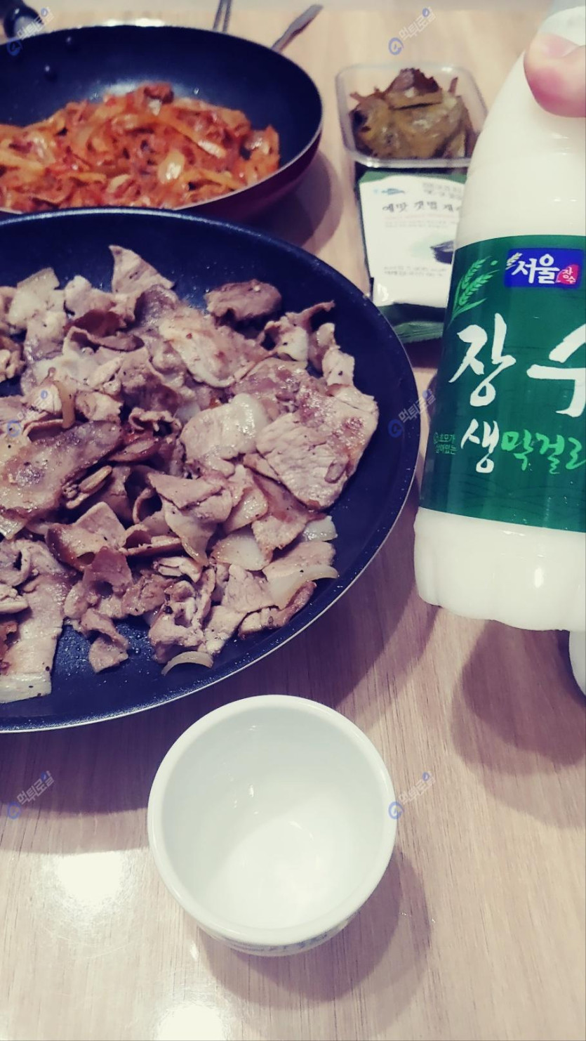 돼지고기볶음, 김치구이에 막걸리 한잔 하니