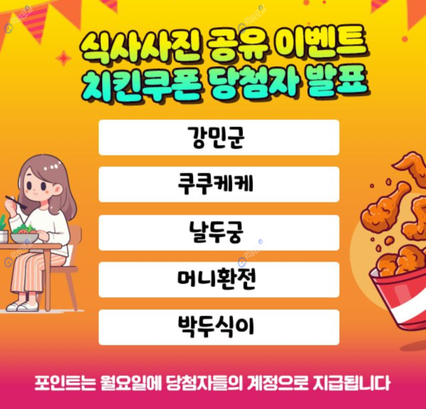 자다 일어났더니 식사이벤트 치킨 당첨!