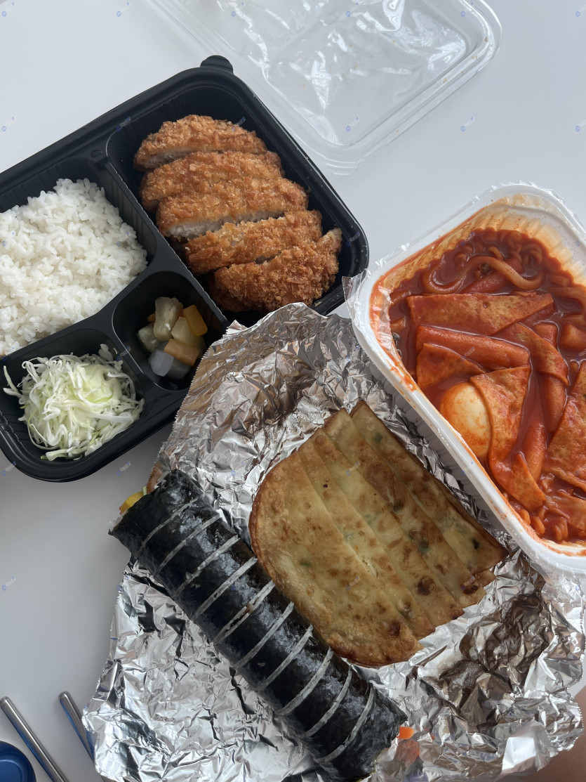라볶이 돈까스에 김밥으로 아점 해결했네요