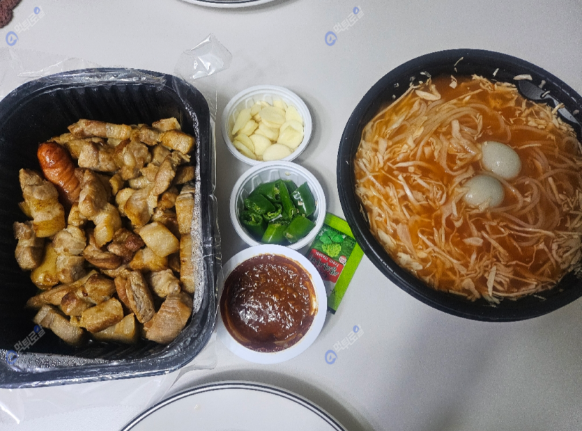오늘 저녁으로는 고기와 냉면으로 마무리