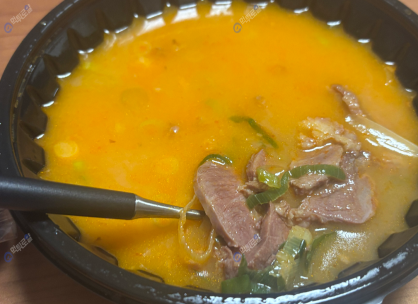 그래서 점심으로 얼큰이국밥 시켜서 먹어요