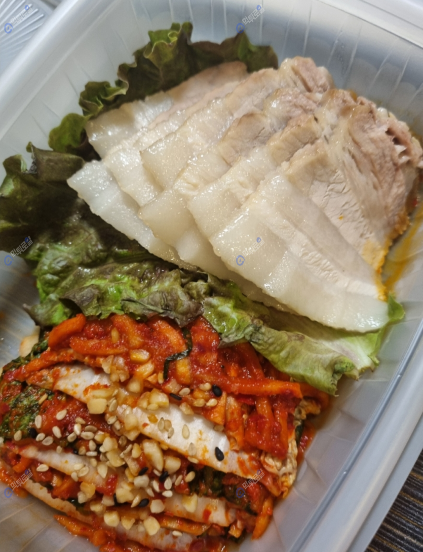 점심으로 맛있는 도시락집에서 순두부찌개와 미니보쌈 하나