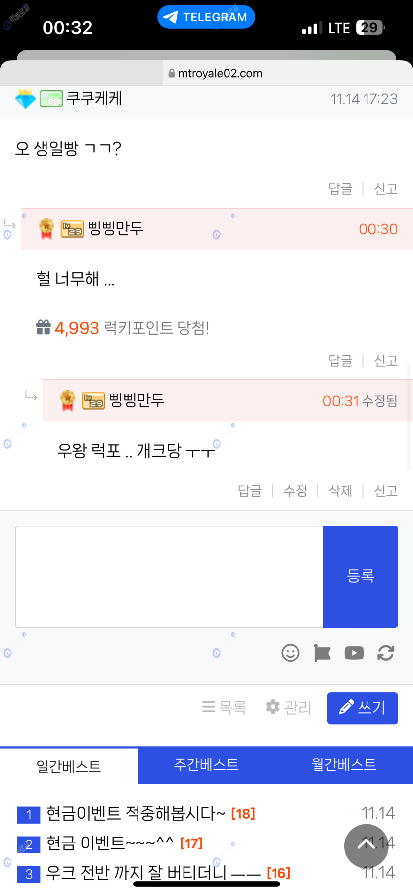 생일 럭포 미리 ? 작성자 정보 삥삥만두 작성 작성일 2025.11.15 00:41 컨텐츠 정보 374 조회 13 댓글 목록 본문 아직 아닌데 ㅎㅎ땡큐땡큐 ~~~~ 0 추천 신고 관련자료 댓글 13 요미치님의 댓글 요미치 작성일 2025.11.15 00:49 축하드려요 신고 축하드려요 삥삥만두님의 댓글의 댓글 삥삥만두 작성일 2025.11.15 01:09 감사해용 신고 감사해용 덕고다이님의 댓글 덕고다이 작성일 2025.11.15 01:07 럭키보이ㅊㅋ 신고 럭키보이ㅊㅋ 삥삥만두님의 댓글의 댓글 삥삥만두 작성일 2025.11.15 01:09 걸 ㅡㅡ 신고 걸 ㅡㅡ 덕고다이님의 댓글의 댓글 덕고다이 작성일 2025.11.15 08:27 유고걸~? 신고 유고걸~? 쿠쿠케케님의 댓글 쿠쿠케케 작성일 2025.11.15 02:58 완즈이 맥스급이네👍 신고 완즈이 맥스급이네👍 삥삥만두님의 댓글의 댓글 삥삥만두 작성일 2025.11.15 08:31 개이덕 !!! 신고 개이덕 !!! 나룻배님의 댓글 나룻배 작성일 2025.11.15 08:34 와 맥스내요 ㅋ 신고 와 맥스내요 ㅋ 삥삥만두님의 댓글의 댓글 삥삥만두 작성일 2025.11.15 10:25 그니깐용 ㅜㅜ 신고 그니깐용 ㅜㅜ 돈키호테님의 댓글 돈키호테 작성일 2025.11.15 10:12 4993 ㄷㄷ 신고 4993 ㄷㄷ 삥삥만두님의 댓글의 댓글 삥삥만두 작성일 2025.11.15 10:25 호덜덜 개이덕 신고 호덜덜 개이덕 나야나요님의 댓글 나야나요 작성일 2025.11.16 12:05 오호ㅋㅋ 신고 오호ㅋㅋ 메갓님의 댓글 메갓 작성일 2025.11.17 10:27 와 부럽습니다 신고 와 부럽습니다 로그인한 회원만 댓글 등록이 가능합니다. 목록