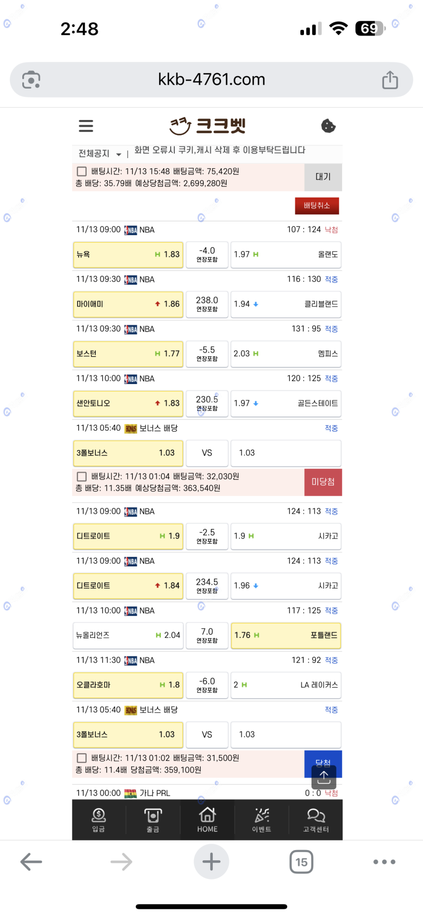 배팅공유 :) 11월13일 느바 이틀 적중! 11배! ㅎㅎ