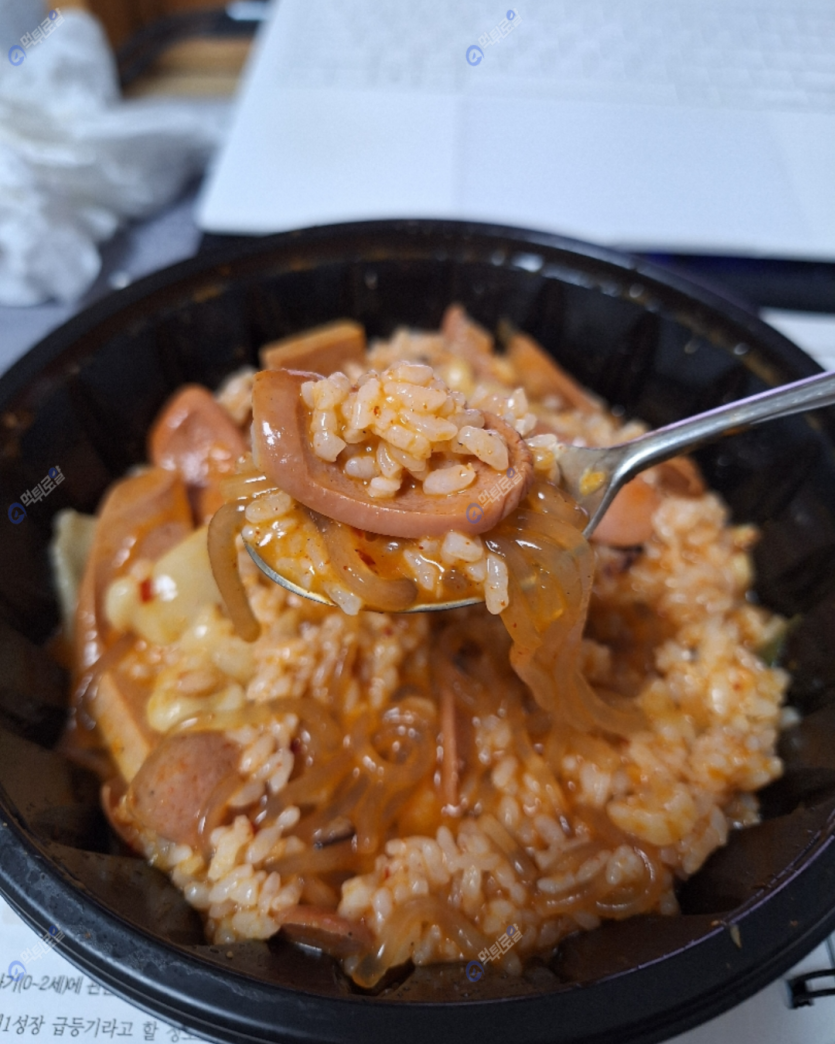 저는 지금 부대찌개에 밥말아서 먹습니다