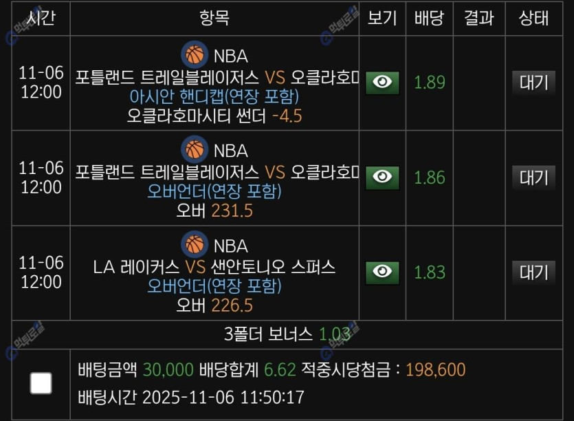 배팅공유)느바 한번 더 작성자 정보 강민군 작성 작성일 2025.11.06 11:51 컨텐츠 정보 336 조회 8 댓글 목록 본문 3연승 적중가즈아~~~!!! 0 추천 신고 관련자료 댓글 8 돈키호테님의 댓글 돈키호테 작성일 2025.11.06 12:41 적중가즈아 신고 적중가즈아 강민군님의 댓글의 댓글 강민군 작성일 2025.11.06 13:24 가즈아 고고고 신고 가즈아 고고고 메갓님의 댓글 메갓 작성일 2025.11.06 13:21 적중기원합니다 신고 적중기원합니다 강민군님의 댓글의 댓글 강민군 작성일 2025.11.06 13:24 응원 감사합니다 신고 응원 감사합니다 요미치님의 댓글 요미치 작성일 2025.11.06 14:17 가즈아 고고 신고 가즈아 고고 강민군님의 댓글의 댓글 강민군 작성일 2025.11.06 14:17 어렵겠어요ㅎ 신고 어렵겠어요ㅎ 나룻배님의 댓글 나룻배 작성일 2025.11.06 17:06 적중가즈아 화이팅 신고 적중가즈아 화이팅 쿠쿠케케님의 댓글 쿠쿠케케 작성일 2025.11.07 17:03 다 적중 가쥬아! 신고 다 적중 가쥬아! 로그인한 회원만 댓글 등록이 가능합니다. 목록