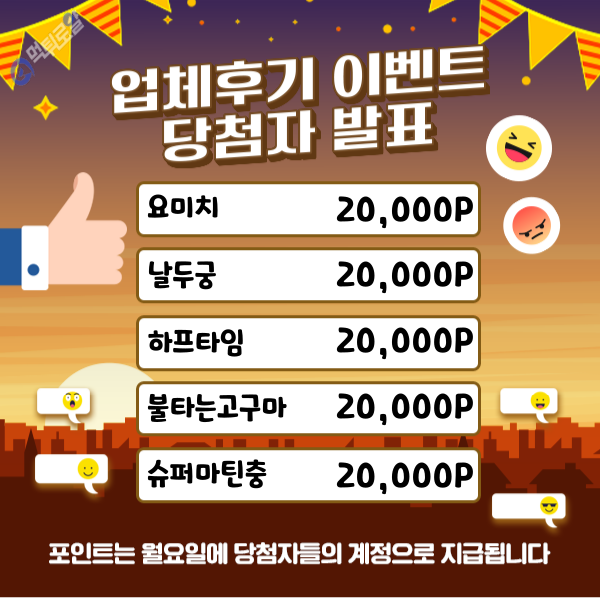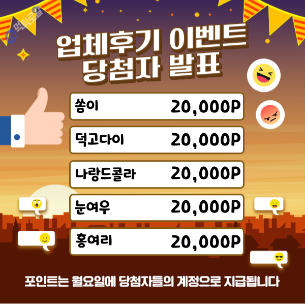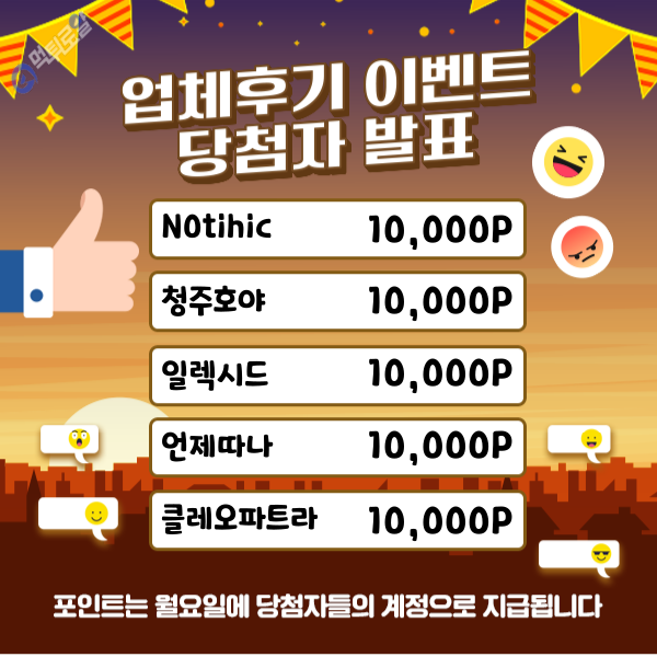 업체후기 이벤트 당첨자 발표입니다.