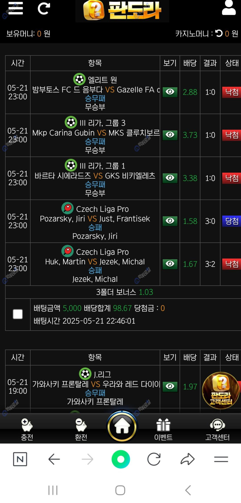 다양한게임들, 스포츠종류도 엄청 많으닌깐