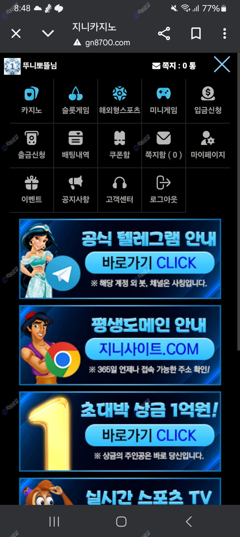 지니카지노는 이벤트가 신박한게 많아요 돌발도 수시로 자주하는게 유저로선 매우만족합니다 관리자님도 친절해서 좋고 추천드리고 싶네요 ㅋㅋ ? 충환전 빠르고 이벤트 많은 지니카지노 번창하시고 모두들 대박나시고 건강챙기세요