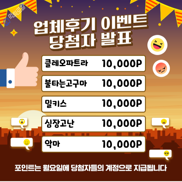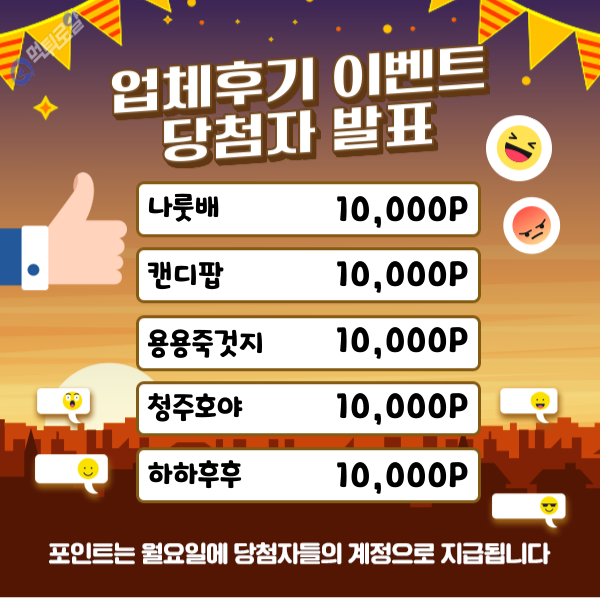 ★ 5월19일 ~ 5월25일 업체후기 당첨자 발표 ★