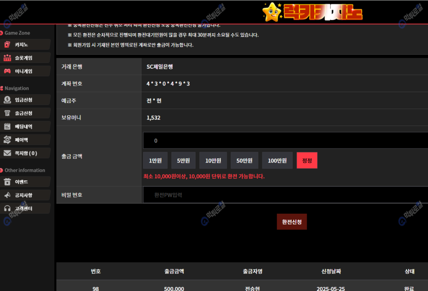 신규 정착이벤 빵빵한거같구. 충환전은 칼같네요 ㄷㄷ