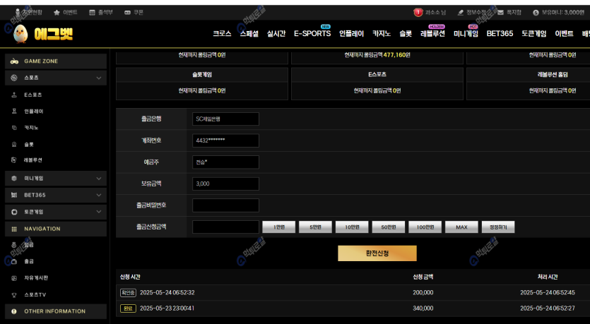요즘 사이트들 가상장때문에 이용 아예못해가지고 여러곳 찾다가 에그벳 가입했습니다