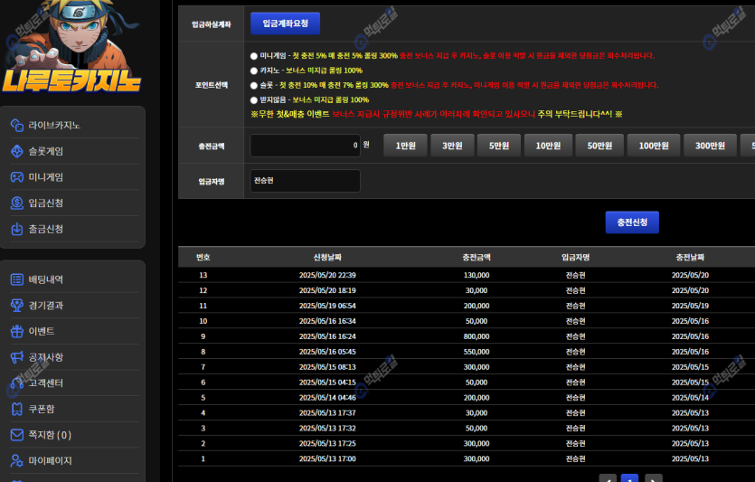 요즘 가상장때문에 배팅도못하다가 나루토알게되어 가입하고 이용중인데요