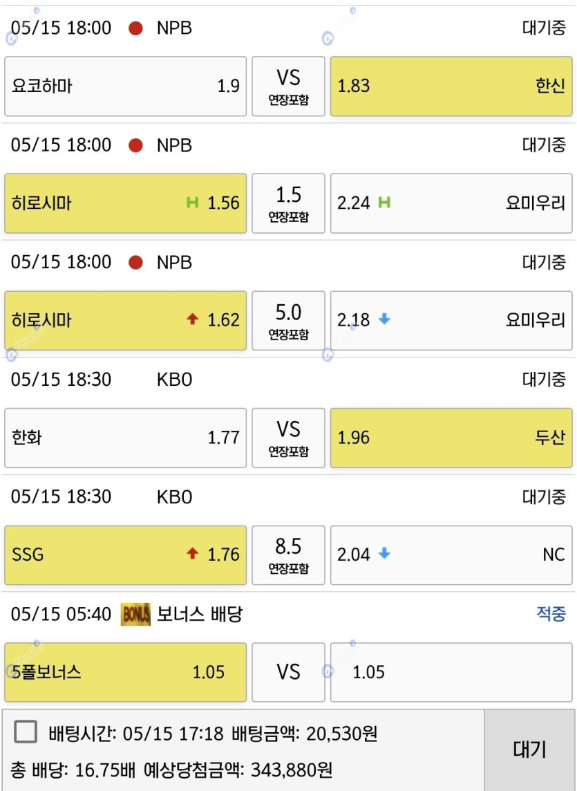 베팅 내역의 결과는 오늘 저녁에나 나오겠네요.