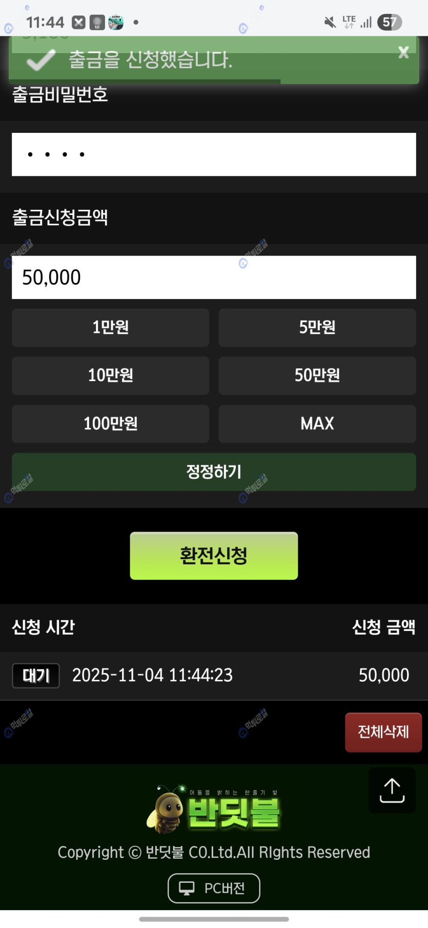 베팅내역이랑 환신청매역 첨부합니다.