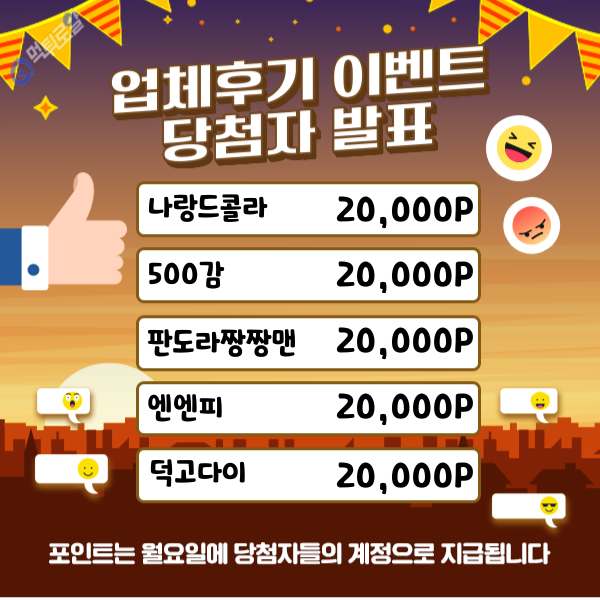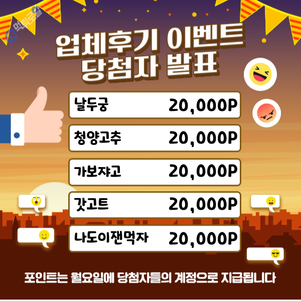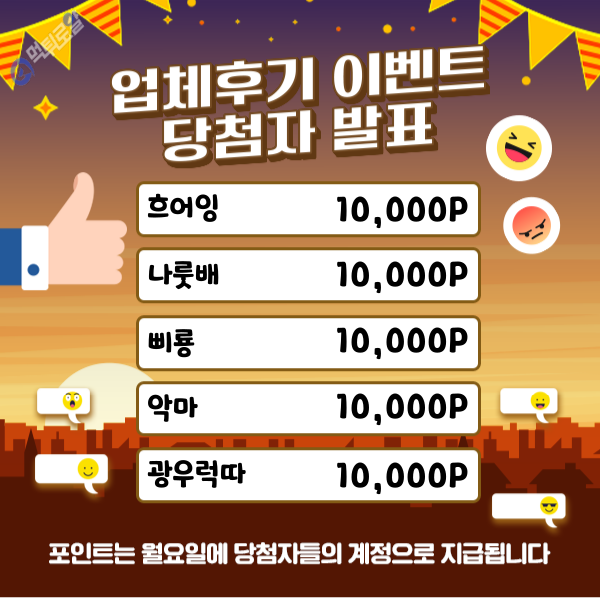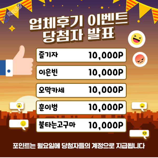 ★ 5월5일 ~ 5월11일 업체후기 당첨자 발표 ★