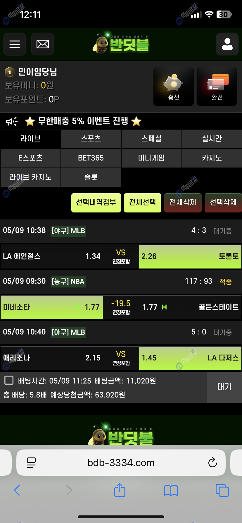 반딫불 요즘 사용중인데 라이브로 실시간으로 배팅하는거