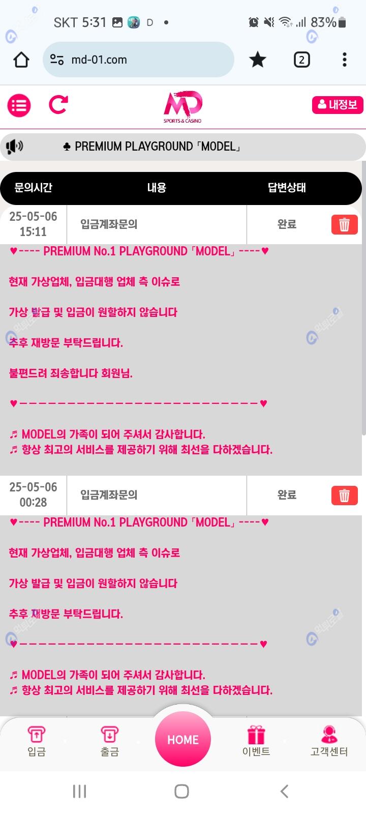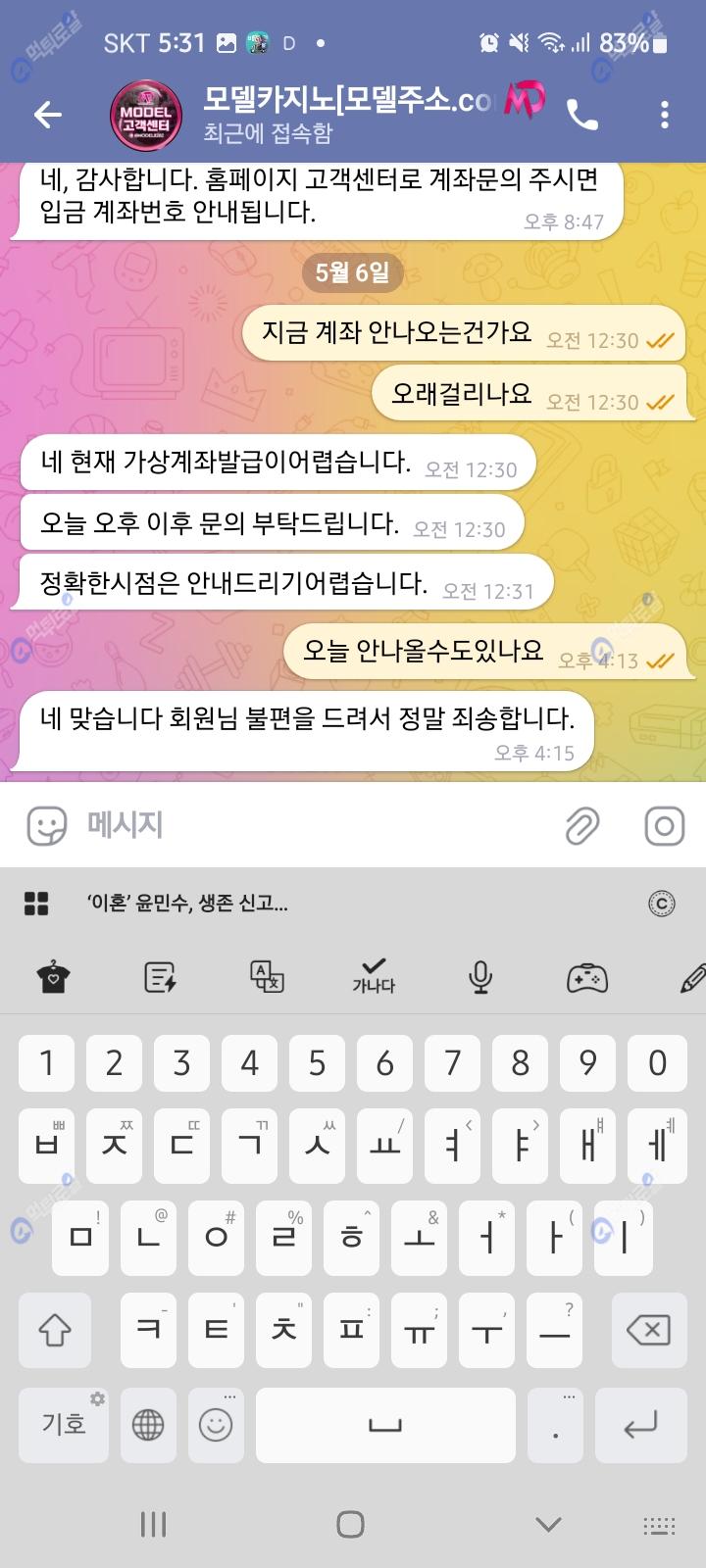 ㅠㅠ 계좌발급이안되네요 모델말고 충전할사이트도없고 먹튀로얄 보증업체는 블랙이라고 안받아줘서 유일한 사이트가 모델인데 계좌 풀릴때까지 돈모아서 풀릴때 크게 승부보고 올라가야겠습니다 그전까진 먹튀로얄 활동하면서 포인트 모아야겟네요