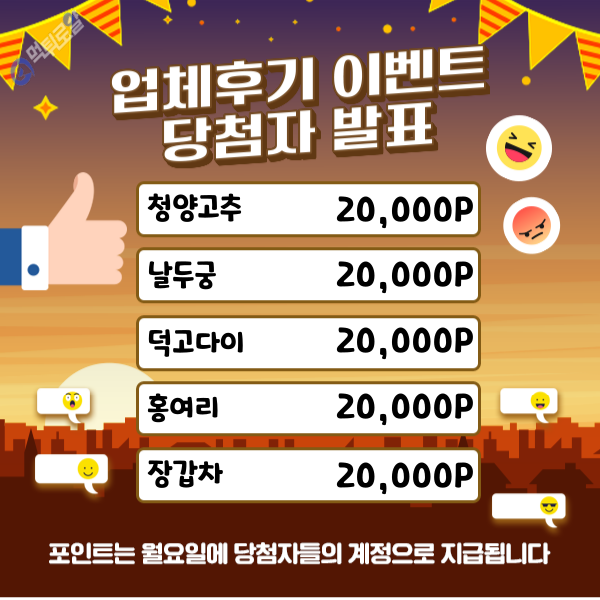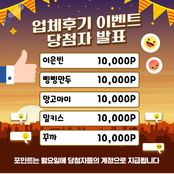 업체후기 이벤트 당첨자 발표입니다.