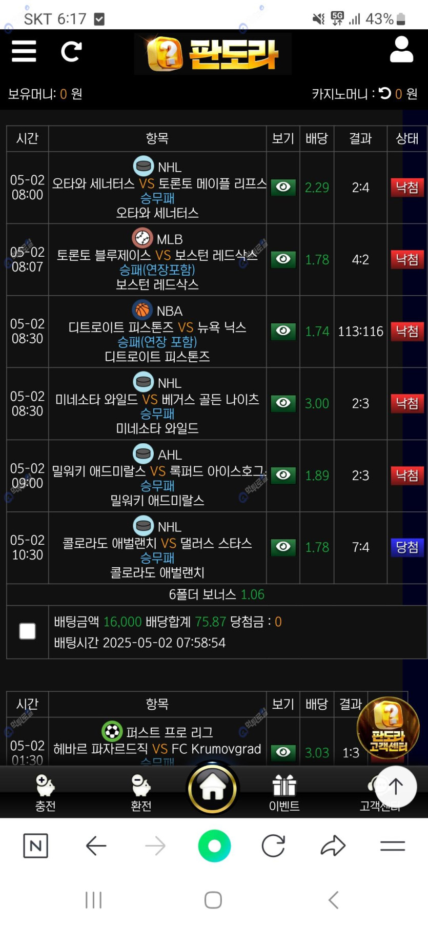 다양한게임들, 스포츠종류도 엄청 많으닌깐