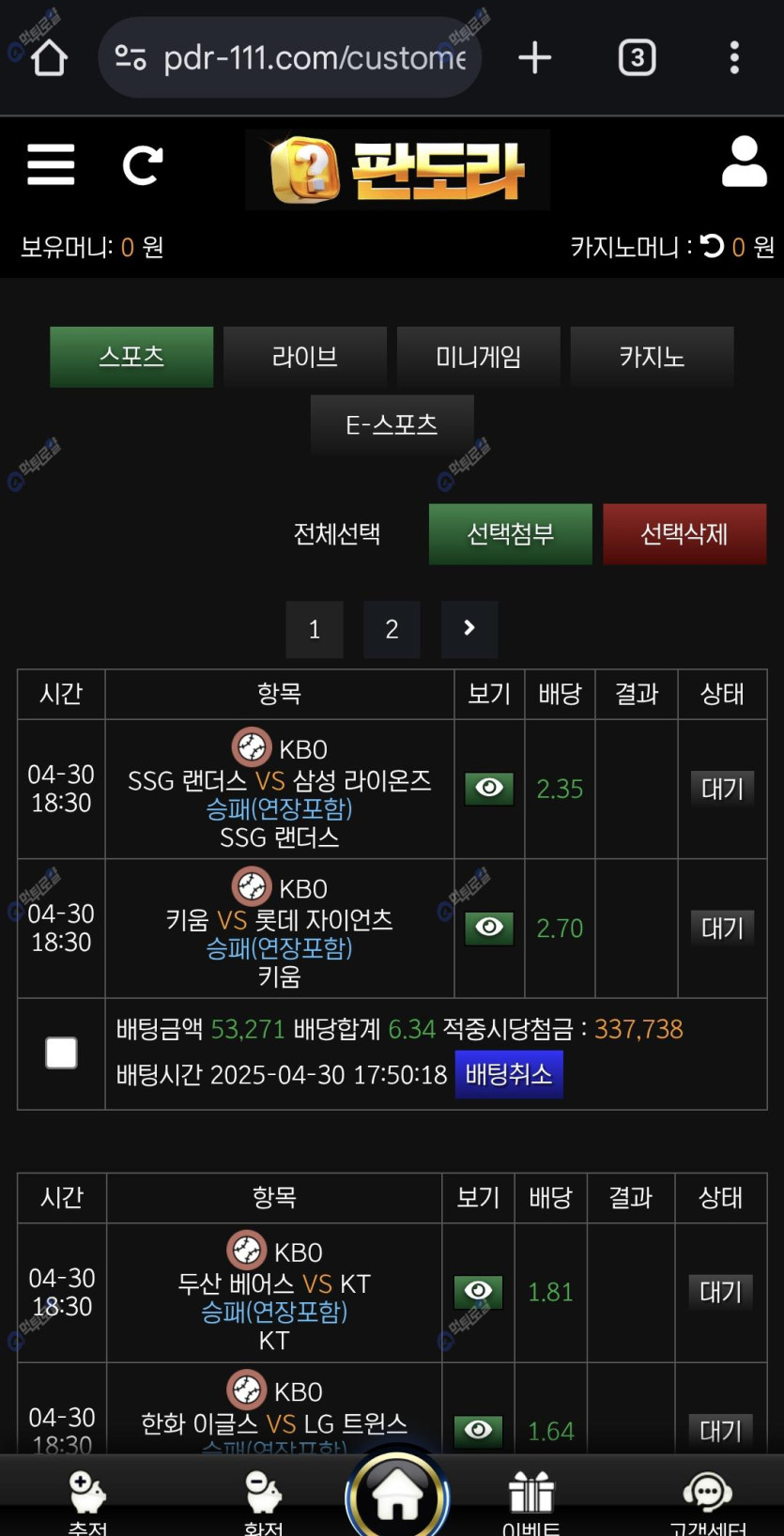 다양한게임들, 스포츠종류도 엄청 많으닌깐