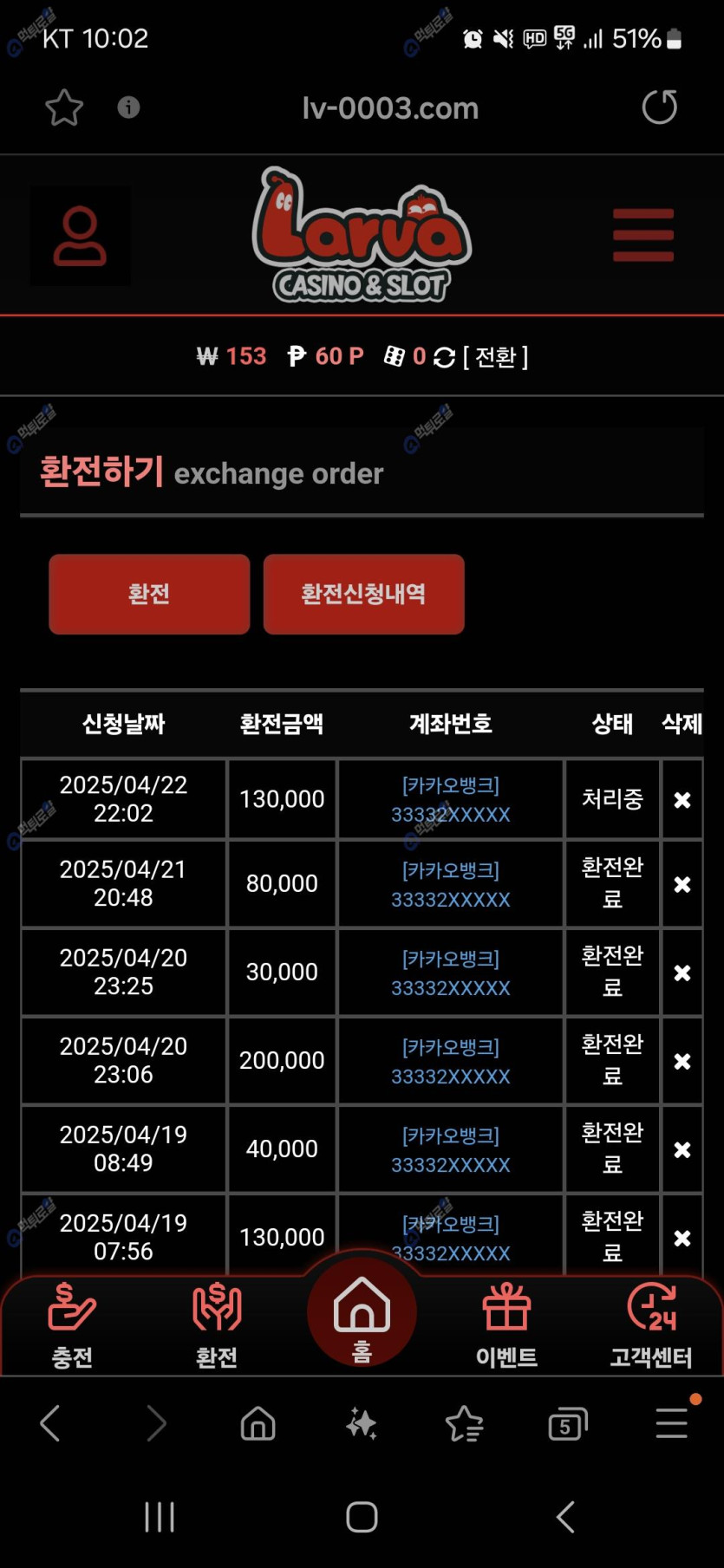 그러고 남은 짤로 슬롯 간보다가 오늘은 안줄 거 같아서 그냥 환전신청 해놓고 지금 리뷰쓰러 왔네요