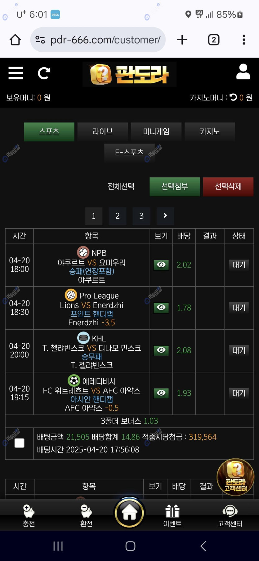 스포츠 간거 다 부러지고 게시판 이벤트 당첨된거로 스포츠 베팅했어요.이번에는 적중좀되면 좋겠네요.그래도 판도라 이벤트 덕분에 한번 더 기회잡았습니다ㅎㅎ판도라 이벤트 진짜 많아요ㅎㅎ둘러보세요~~~^^