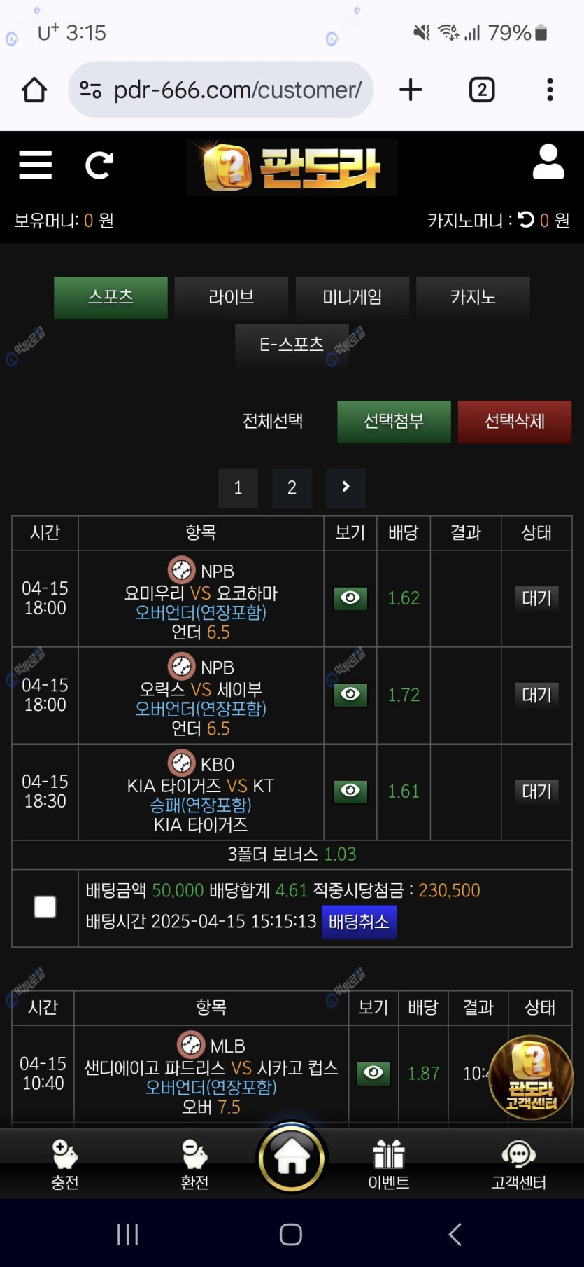 포인트 교환 지급 받자마자 5배에 거의 맞춰서 베팅 가봤습니다.요새 계속 한폴낙인데 이번에는 좀 맞아줬으면 좋겠네요ㅠㅠ판도라 환전빠르고 고센응대도 빠릅니다.저는 만족하며 이용중이요^^