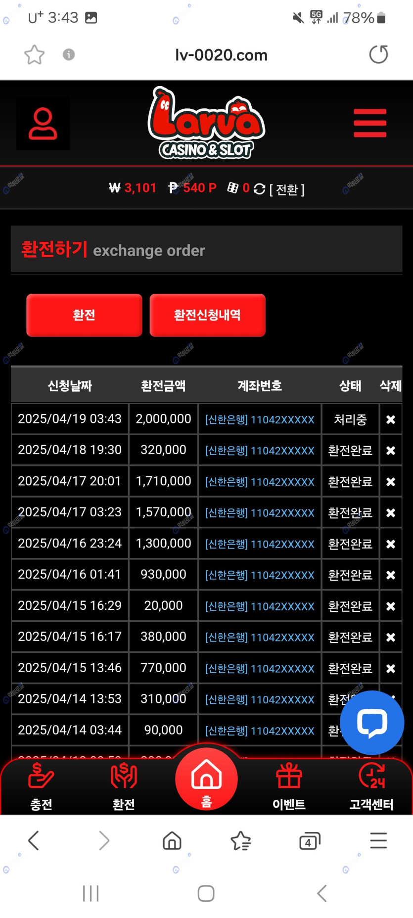 200환전 카지노 인증후기 남겨봅니다