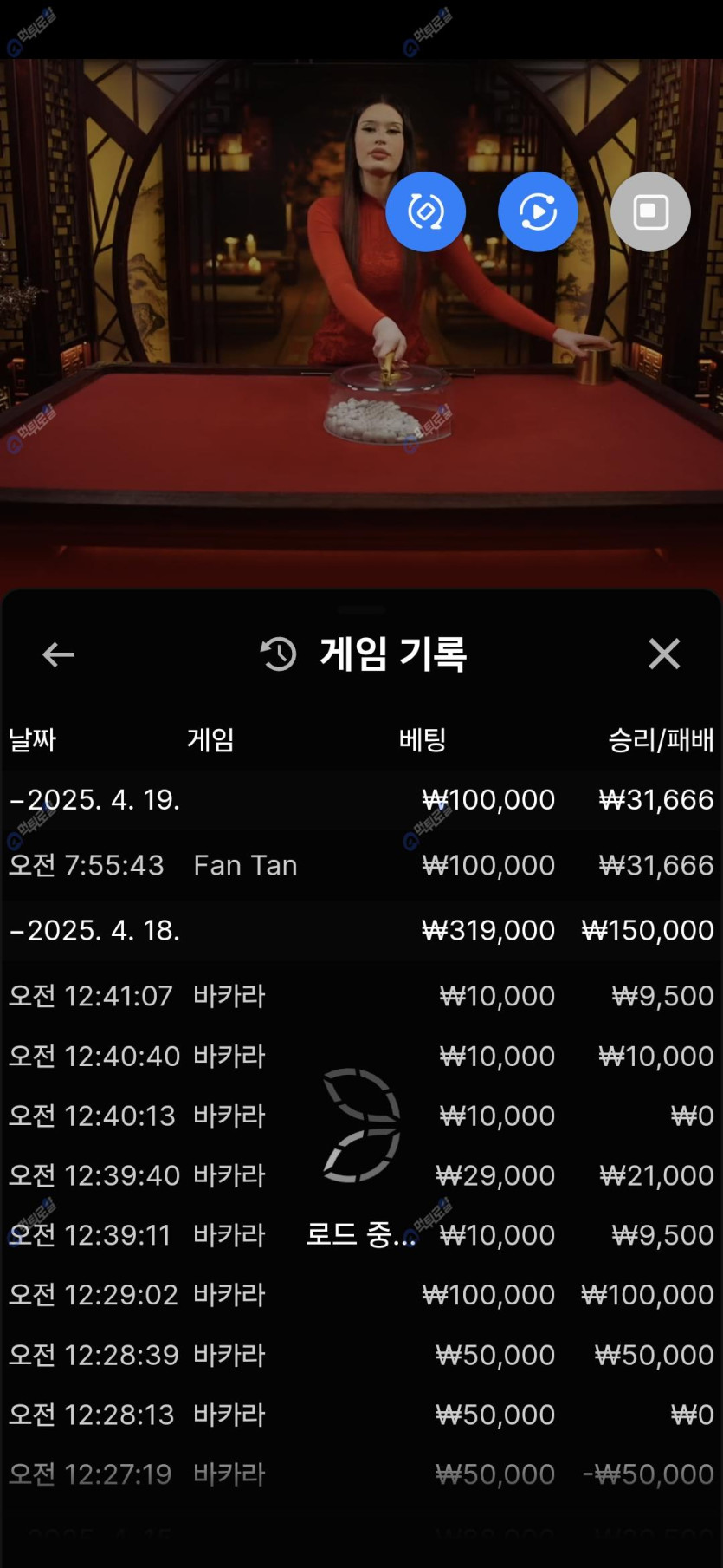 그러고 바로 에볼루션 카지노에 들어가서 판탄이라는 게임에 쉿 배팅을 이용해서 바로 롤링 100퍼인 10만원을 배팅해 줬습니다