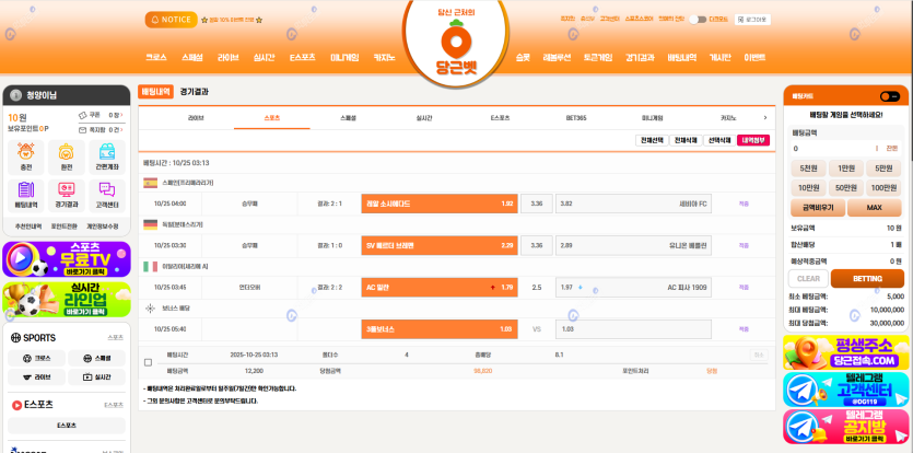 3만원 충전 후 슬롯으로 1만 2천원 남기고 스포츠 걸고 적중!