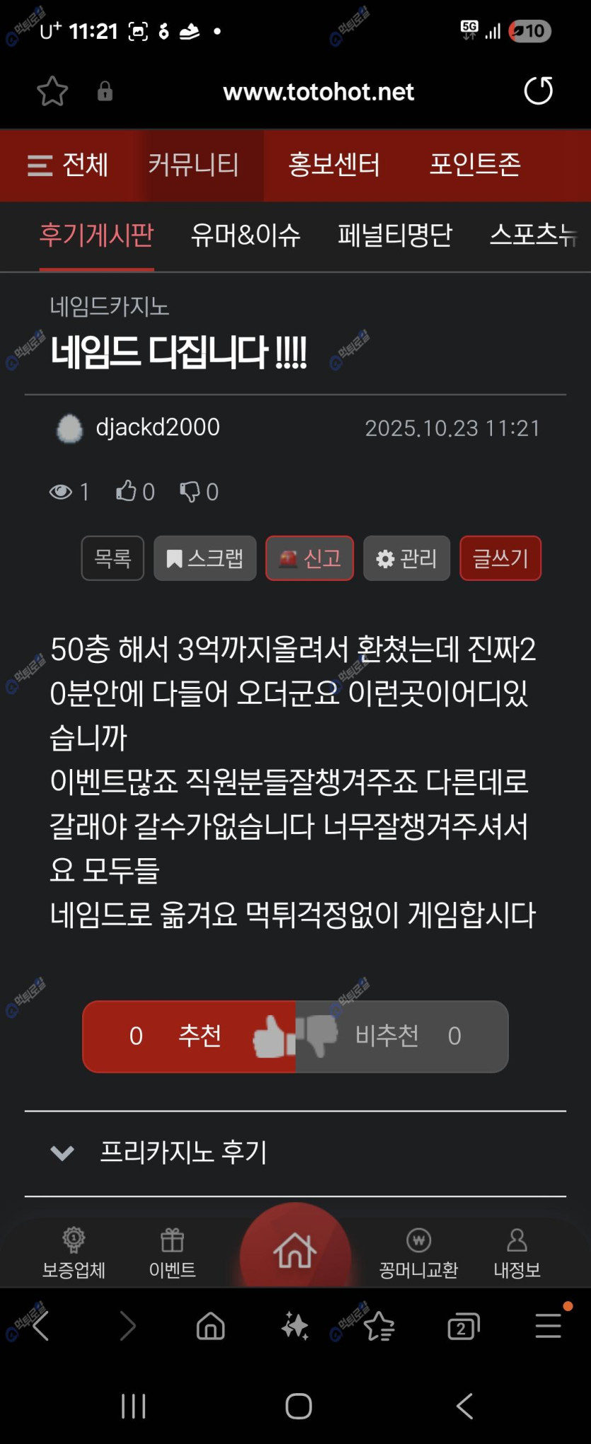 엉뚱한데가서 게임하지말고 안전한네임드가서 게임하세요^^