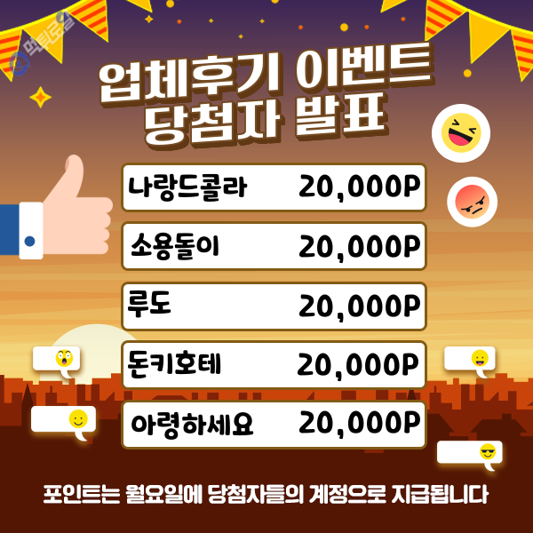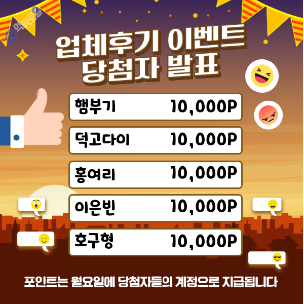 ★ 10월13일 ~ 10월19일 업체후기 당첨자 발표 ★