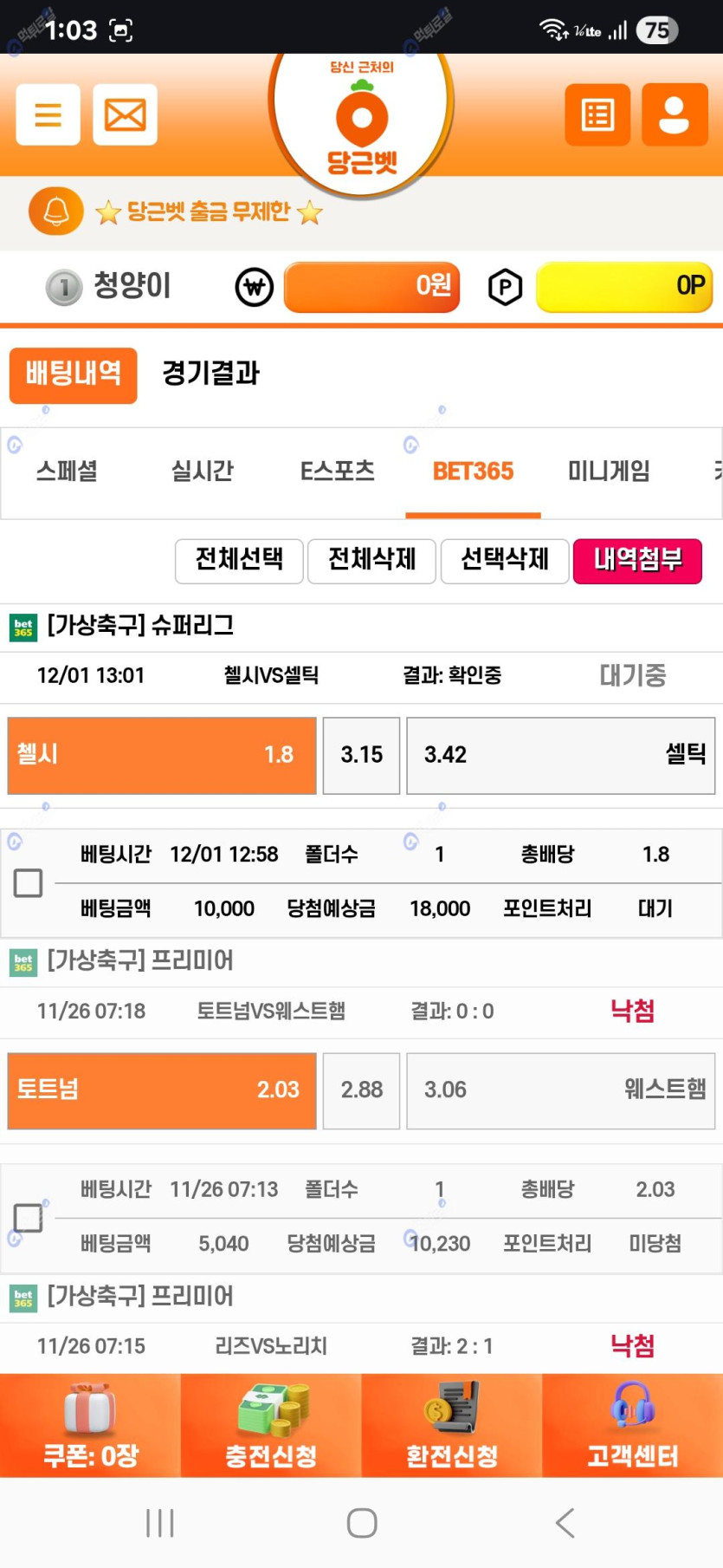 점검중이라 가상축구 1.8 저배당 걸었는데