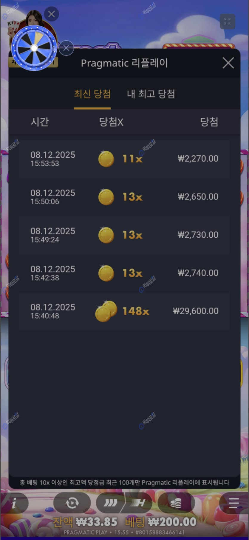 그러고 진짜 오라메,토라메,보난자 다 돌아다니면서 빨리다가 그냥 마지막5천원때 끝내자는 마인드로 보난자러쉬 새로 나온거 해서 바로 진입되고 150배정도 나와서 한턴 살았다가