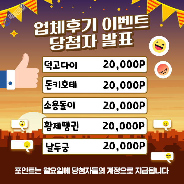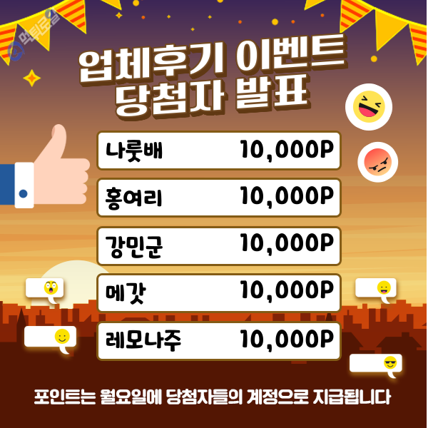 업체후기 이벤트 당첨자 발표입니다.