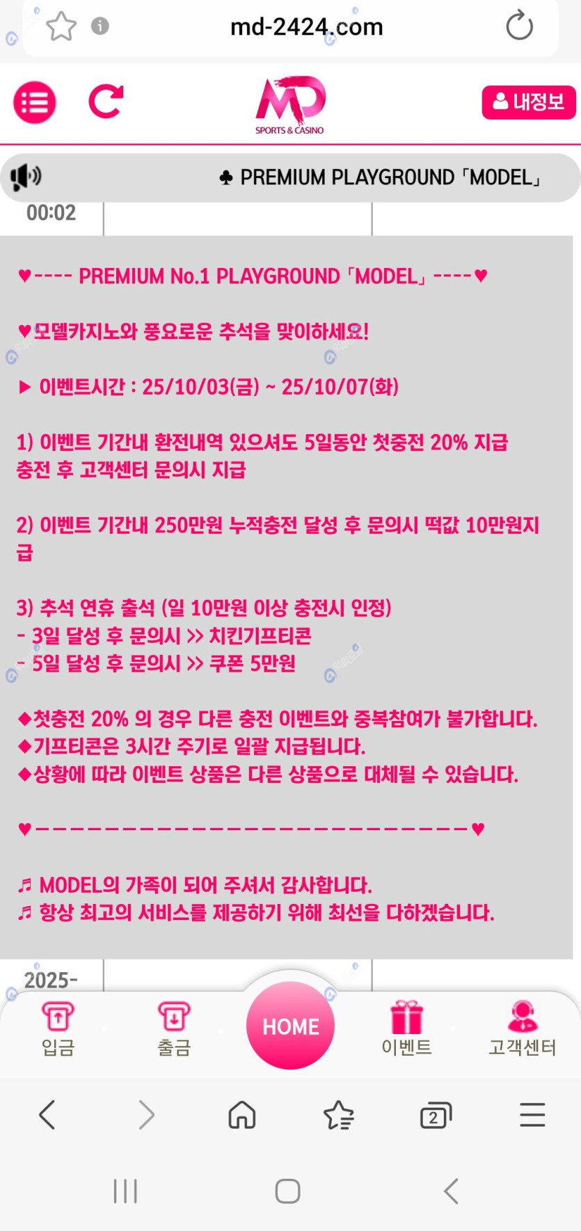 생각 반대로 결과가 나왔네요~! 다음기회로~~! 모델에서 추석이벤트중이니 참여해보세요~! 빠른 가상계좌 확인과 충환 좋으니 모델 이용해 보세요~