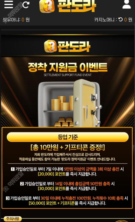 판도라 후기입니다 저는 판도라에 이사를 하였는데 그 이유가 롤링 100%에 모든 게임 제재 없이 이용 가능해서 최고의 장점인거같구요 저는 주로 스포츠를 제일 많이하는데 배당 높습니다 신규정착이벤트도 저는 다참여했는데 오셔서 이용해보세요 건승하세요 화이팅